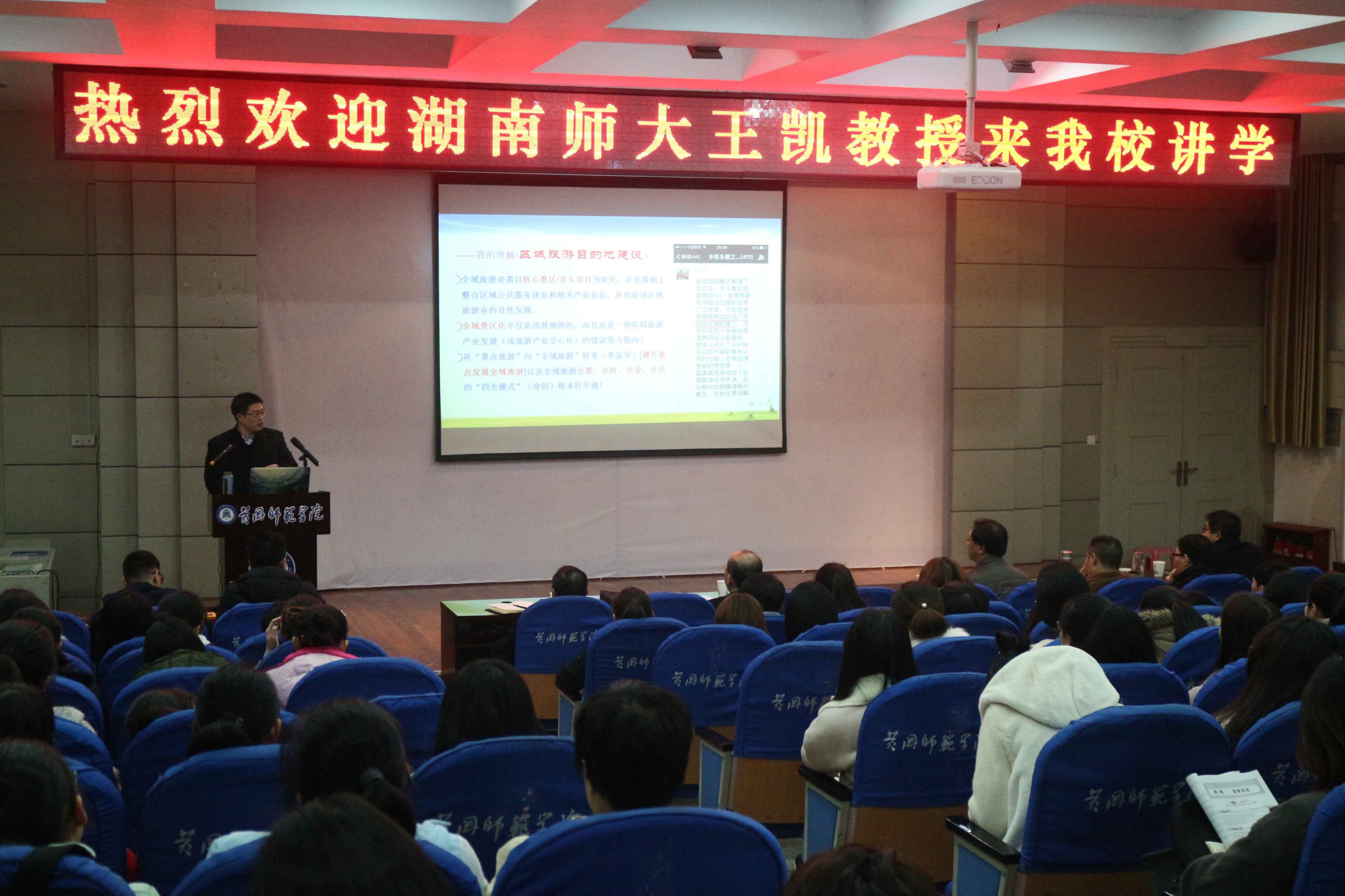 11月29日下午,湖南师范大学旅游公司王凯教授应邀来公司,为公司旅游文化与地理科学公司师生举行了一场题为《全域旅游背景下旅游发展与创新》的报告。