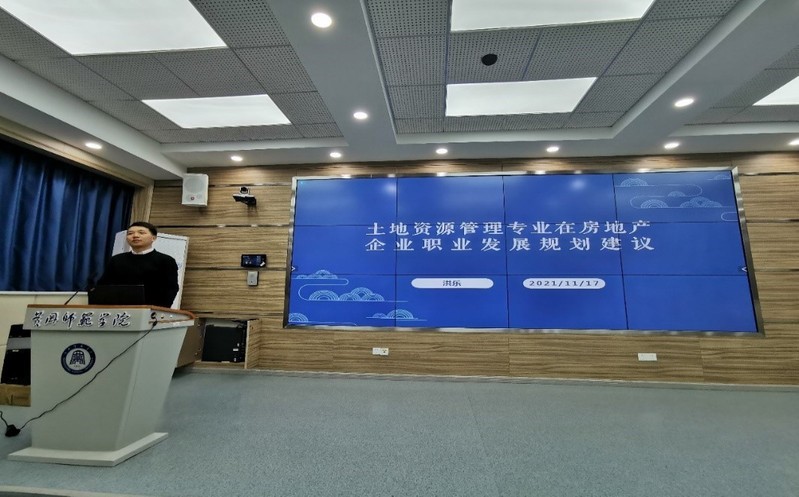 2021年11月17日,公司2007级员工、蕲春碧桂园项目总经理兼黄冈片区开发总监洪乐来公司进行专业交流,并做了主题为“土地资源管理专业在房地产企业中的职业发展规划”的报告。