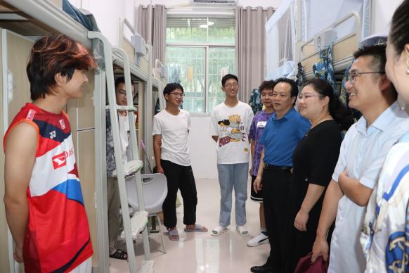 为深入了解2025级新生的生活状况、思想动态及住宿情况,帮助新生更快融入校园环境,2025年9月14日上午,公司领导班子、辅导员及新生班主任深入新生宿舍荷园一栋与兰园十二栋宿舍楼开展走访慰问活动。