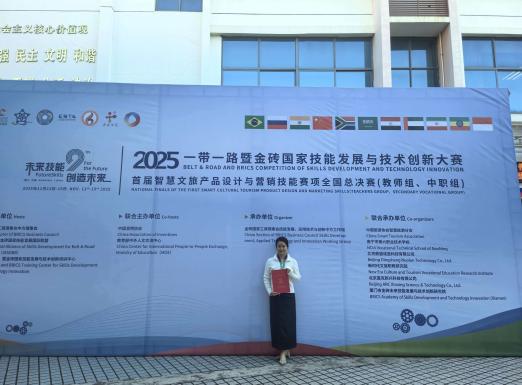 11月11日至13日,2025“一带一路”暨金砖国家技能发展与技术创新大赛首届智慧文旅产品设计与营销技能赛项全国总决赛圆满落幕,公司学子(张彩云、刘烨、刘玉玲)以及教师组(蔡婷婷、夏潇)组成的参赛团队凭借创新的设计理念、扎实的专业能力与高效的团队协作,经过省赛选拔到国赛,从全国81支队伍、300余名技能精英中脱颖而出,最终荣获省赛二等奖、全国总决赛优秀奖;教师组斩获国赛二等奖,彰显了黄师在智慧文旅人才培养领域的扎实成效。