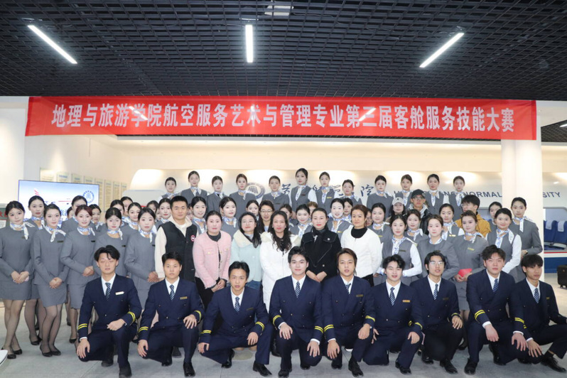 本次活动通过“以赛促教、以赛促学、以赛促练”,有效检验了教学成果,提升了员工综合职业能力,为深化产教融合、促进航空服务人才培养与区域文旅产业协同发展注入了新动力。旅游管理教研室部分教师及航空服务艺术与管理专业2023级、2024级全体员工参加活动。